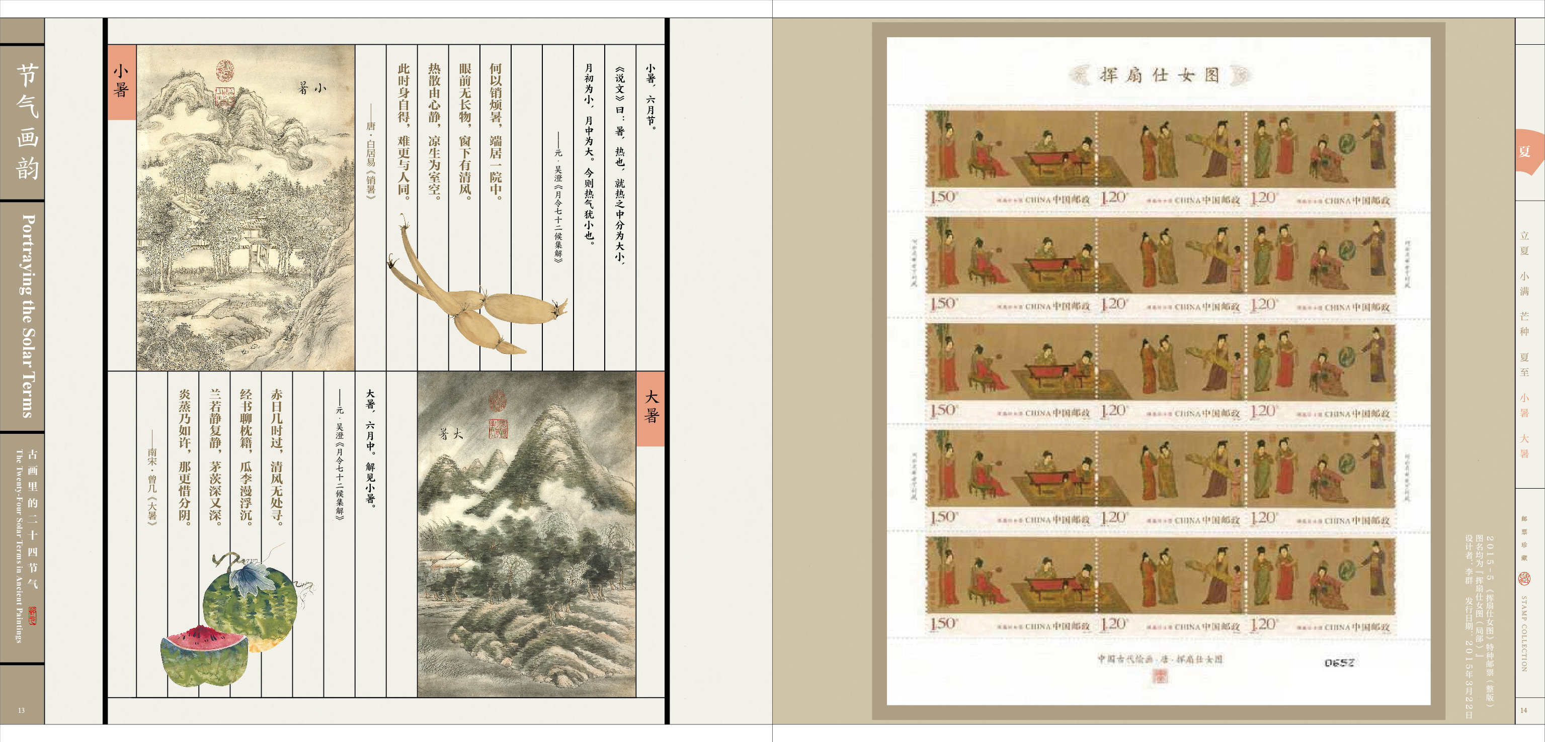 珍藏册内配有与节气、古画相关的邮票及“乙巳年”生肖邮票版式二,使它不仅是一本画册,更成为具有收藏价值的艺术藏品。邮票作为文化的载体,与古画相结合,既增添了产品的趣味性,也提升了其收藏价值和传承意义。