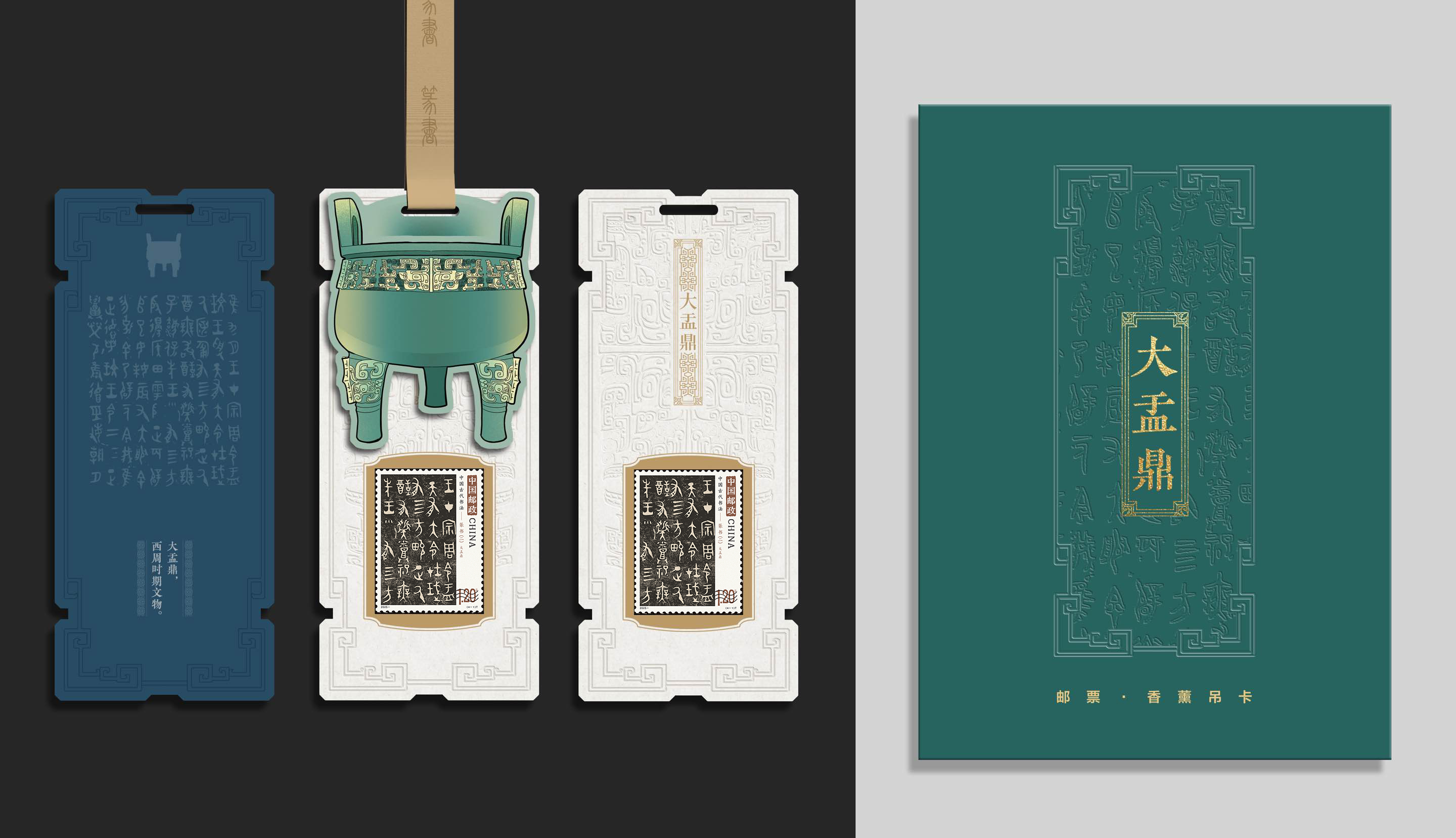 《中国古代书法——篆书(二)》邮票·香薰吊卡由一枚文物造型的香卡和一枚镶嵌了邮票的吊卡组成,为您带来视觉艺术与嗅觉艺术的沉浸式文化体验。它可以是一枚书签,也可以是一个车挂,可以是屋间的一个香薰,亦可以是一个小小的艺术品。此产品不仅收藏了国家名片,让古老文字在方寸间焕发生机,也让历史的芬芳萦绕指尖。
