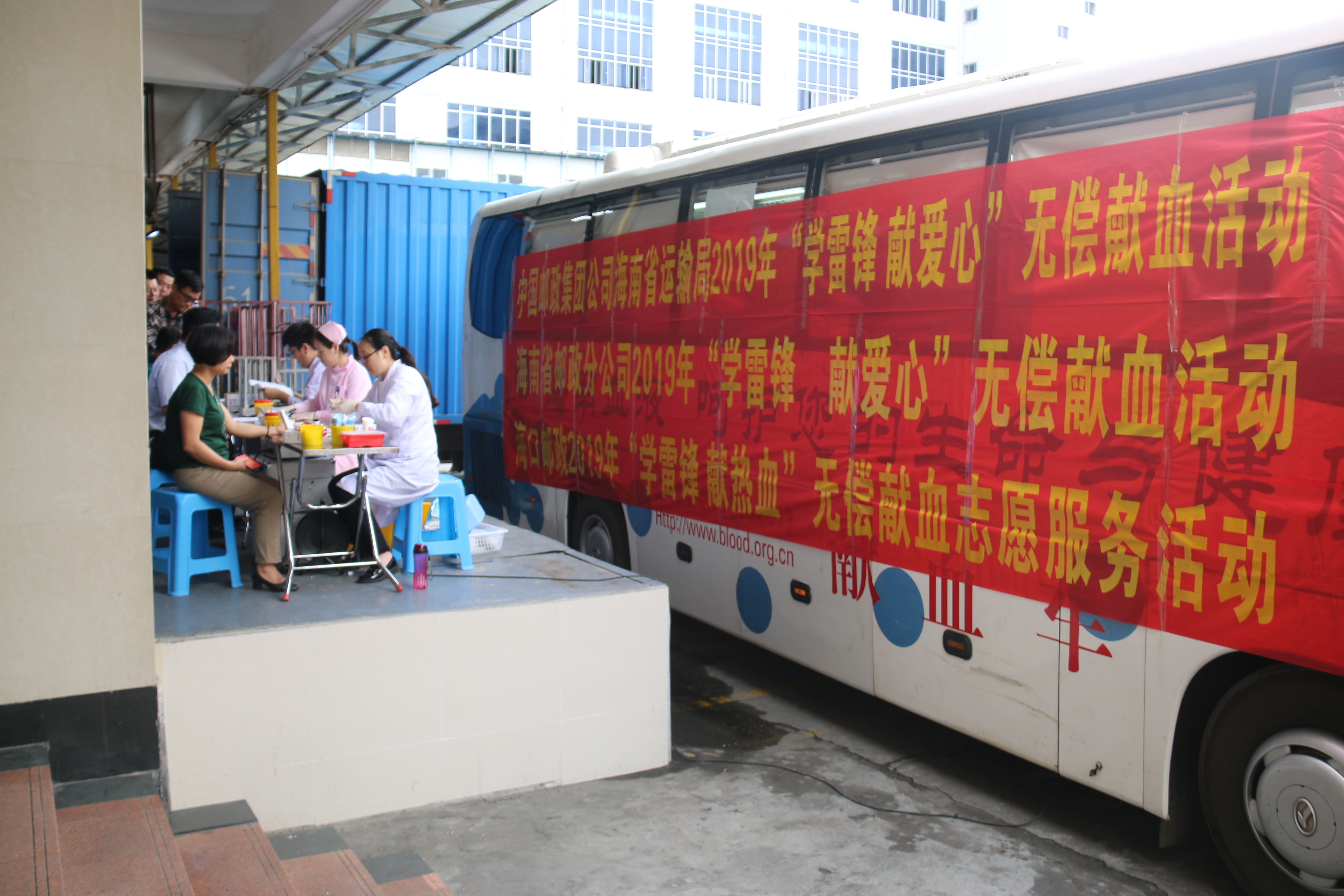 为纪念“雷锋日”,进一步丰富海南邮政志愿服务活动,同时发挥各基层党组织党员先锋模范作用,省分公司直属机关党委牵头组织,向省分公司直属机关全体党员发出倡议,号召广大党员干部率先垂范带头并带动身边的团员青年、职工群众积极参加无偿献血。此次活动共有省邮政分公司机关各部室、邮储银行海南省分行、省寄递事业部及省信息技术局、省培训中心、省机要通信局、物业公司、海口市邮政分公司的近200名员工踊跃报名参加。