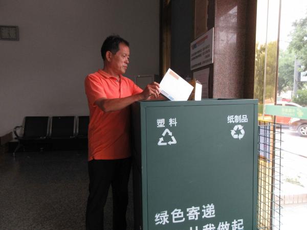 7月14日下午,茌平邮政寄递事业部揽投员肖春强归班后把清理的垃圾分类装入环保回收箱。 6月份以来,茌平县邮政分公司把环保意识践行到实际工作中,并把首批新款绿色环保回收箱配送到寄递、营业等网点,从而引导前来办理业务的客户分类清理垃圾,有效提升了环保意识。