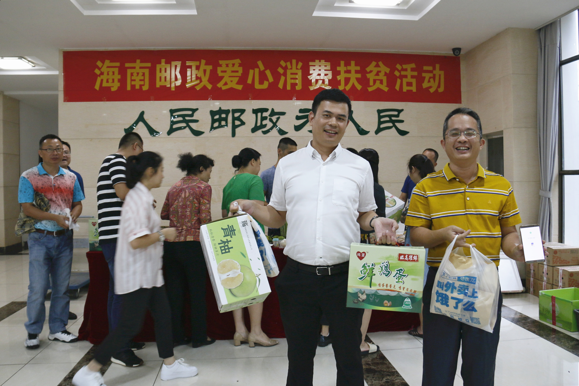 10月17日,是我国第6个“国家扶贫日”,也是第27个“国际消贫日”。当天,海南省邮政分公司在机关大楼一楼大厅开展爱心消费扶贫活动,吸引了广大职工参与。据了解,活动产品来自海南省邮政分公司定点扶贫村临高县皇桐镇美香村和海南汇临农业发展有限公司(该公司有美香村贫困户参股),有青柚、红橙、鱼干、鸡蛋和海鸭等产品展示出售,现场共销售超万元。