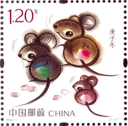 《庚子年》特种邮票延续第四轮生肖邮票的创作理念,采用小写意装饰画法。邮票第一图为“子鼠开天”,一只形象可爱的老鼠腾空跳起,抬头望天,奋力咬破混沌,寓意民间传说中的“鼠咬天开”,同时老鼠跳跃的姿态也寓意鼠年生活节节高之意;第二图为“鼠兆丰年”,两只大老鼠带着萌动可爱的小老鼠侧身远望,身边是寓意丰收的花生,表情欢喜、得意,寓意2020年五谷丰登,生活幸福美满,也包含鼠到福来含义。