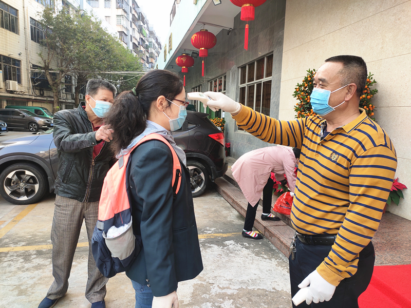 2月3日,是节后返岗首日,海口市分公司机关枢纽楼首批返岗工作员工在办公楼前接受体温测试和领取防护口罩。大家对企业关心关爱员工的做法表示赞许,信心满满地表示一定坚决执行相关安排和部署,打赢这场疫情防控阻击战!