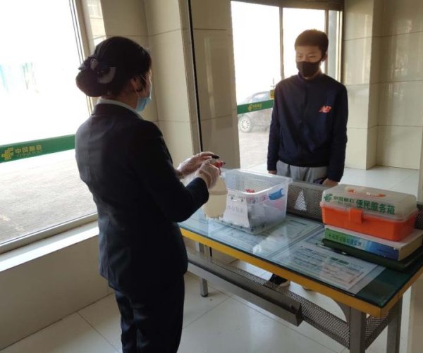 支局营业厅放有“邮件无接触验视箱”,客户邮寄邮件直接放入,营业员消毒,验视内件封装后收寄,整个过程客邮双方均无直接接触。此外还实行了设置无接触邮件自提箱、厅内限入3人等措施。