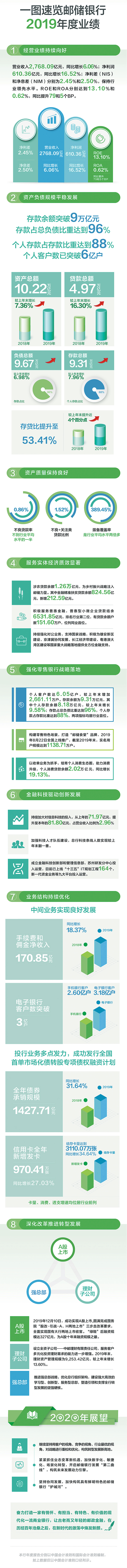 3月26日,中国邮政储蓄银行(下称“邮储银行”,股票代码:601658.SH,1658.HK)以线上形式举办2019年业绩发布会。邮储银行董事长张金良、行长郭新双以及相关管理层成员出席。