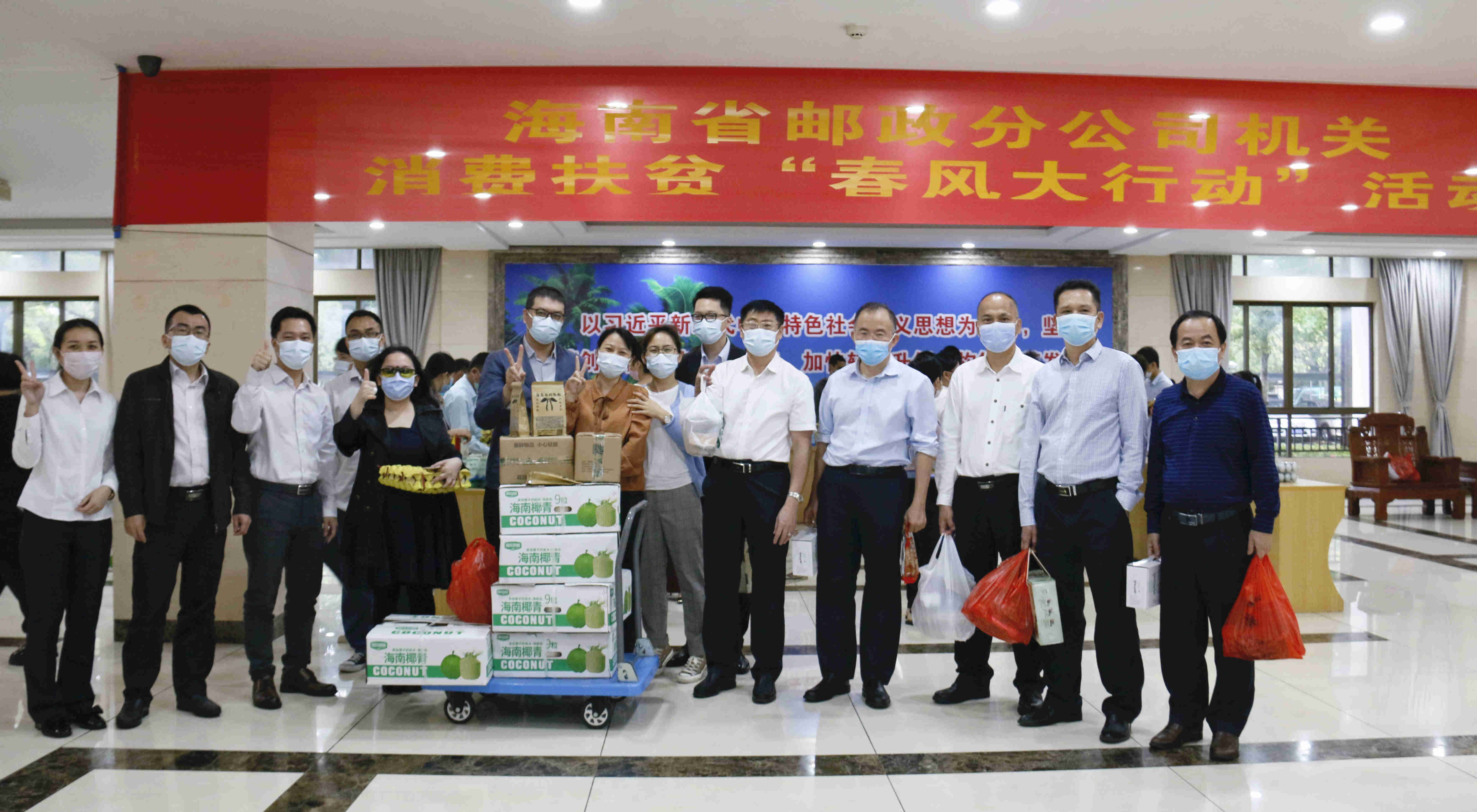 活动伊始,省分公司一楼大厅人流涌动,省分公司领导班子成员与现场销售人员亲切交流,详细了解各类扶贫农产品的品质、价格、产地等情况,并积极选购,以实际行动助力消费扶贫。在现场的机关干部职工热情高涨,积极抢购,没有到现场参加活动的干部职工也根据产品清单委托他人代购,贫困户准备的农产品很快全部售罄。此次销售的都是省分公司定点扶贫村临高县皇桐镇美香村生产的农产品以及邮政电商扶贫的农特产品,品种丰富,选择性强。