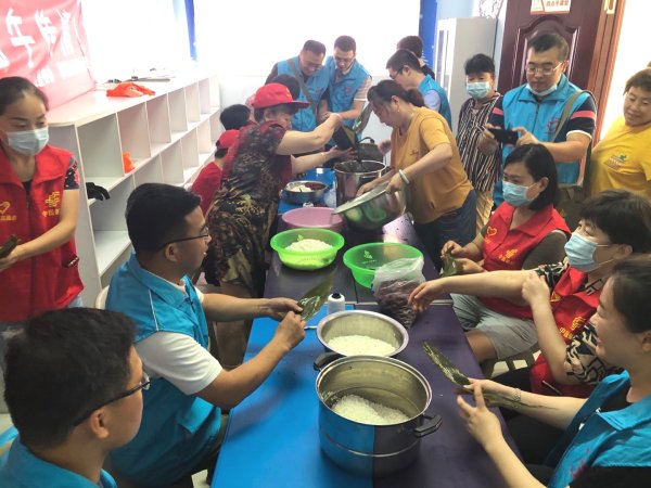 端午节当天,聊城市邮政分公司组织党员和入党积极分子等志愿者,来到帮包的九州街道办事处凤凰社区马庙新村小区,与高新区宣传办、凤凰社区的志愿者们联合开展“香飘万粽 端午传情”包粽子活动。活动现场,社区居民和志愿者们边拉家常、边包粽子。志愿者们把包好的粽子分别送给了社区居民和小区的保洁员。此次活动拉近了邮政企业与社区居民的距离,同时让群众感受到了党组织和社区大家庭的温暖。