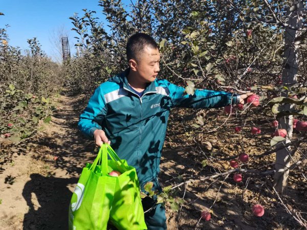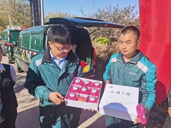 11月10日,莱西河头店镇政府在东大寨村举办首届“苹果云采摘节”。在前期邮快合作的基础上,莱西分公司与当地政府建立了紧密的政企合作关系,并作为采摘节唯一指定寄递服务商,为各大平台线上下单提供全程寄递服务。