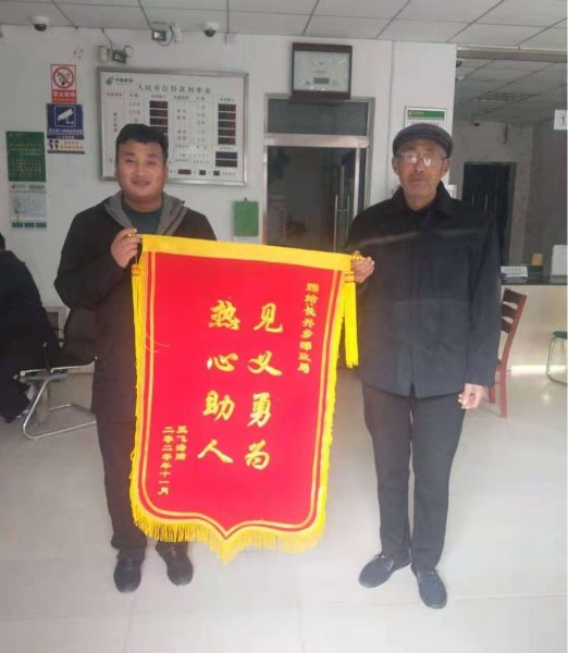 “感谢我们长兴邮局的同志们关键时刻伸出援手!”11月20日,东明县长兴乡老君堂村的王明发老先生一大早来到东明县长兴支局,为邮政工作人员送上“见义勇为 热心助人”的锦旗。