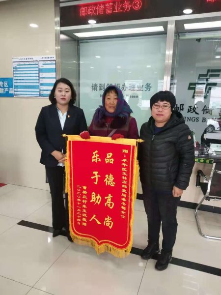 11月26日,烟台牟平玉林店邮政支局迎来一位特殊的客户,他不是来办理业务的,而是手持一面“品德高尚,乐于助人”的锦旗,要将这面锦旗亲手送给叫投递员潘冬梅,感谢她在百忙之中帮助他们找回走失的孩子。