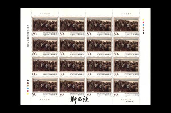 靳尚谊先生与邮票有着不解之缘。除他亲自设计的《孙中山诞生一百二十周年》小型张外,其油画作品也曾多次登上中国邮票。2006年发行的《中国工农红军长征胜利七十周年》纪念邮票第一枚“送别”,2013年发行的《毛泽东同志诞生一百二十周年》纪念邮票第二枚“北国风光”、第三枚“毛泽东在十二月会议上”的原画均出自靳先生之手。任永信表示,靳先生画作中的人物造型生动传神、特点突出,承载着这些作品的邮票,已成为邮票史上的经典,兼具文化价值、美学价值和集藏价值,深受广大集邮爱好者喜爱。值得一提的是,靳尚谊先生曾创作多幅表现毛主席形象的画作,而他的生日恰与毛泽东主席生日同月同日,是生日的巧合,更是创作上的缘分。