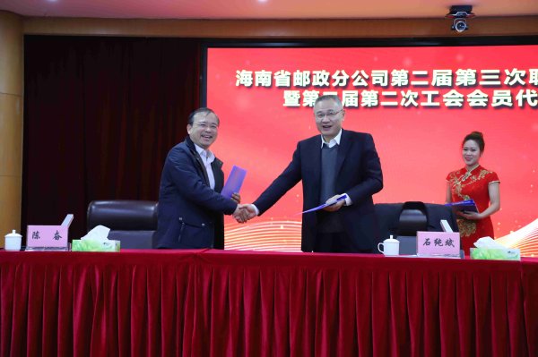 省分公司党委书记、总经理石纯斌作了题为《坚持改革创新 融入自贸港建设 为构建高质量发展的新邮政努力奋斗》的工作报告。省分公司党委委员、副总经理、工会主席陈奋作了题为《创新增活力 和谐促发展 团结带领广大职工为推动海南邮政高质量发展作出新贡献》的工会工作报告。省分公司党委委员、副总经理杜标岭,党委委员、纪委书记杨泉鸣参加了会议。本次会议采取现场和视频相结合的形式召开,全省邮政三级副以上人员及职工代表在各会场参加会议。