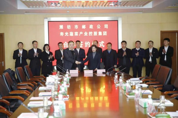 1月29日,潍坊市邮政分公司与寿光蔬菜产业控股集团达成战略合作,双方主要领导及相关负责人出席签约仪式。