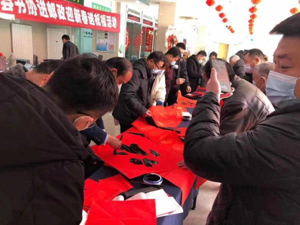 为提升客户用邮体验,新春来临之际,微山县邮政分公司携手书法家协会在荷都支局开展“迎新春、写对联、送祝福”活动。