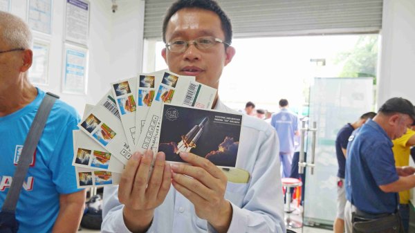 集邮爱好者陆胜平告诉记者:“今天我除了看到火箭发射以外,还专门跑来龙楼邮政支局购买发射纪念封,寄给我的朋友和家人,纪念封很漂亮,看到海南邮政事业像卫星发射一样蒸蒸日上,我们集邮爱好者内心感到非常喜悦!”