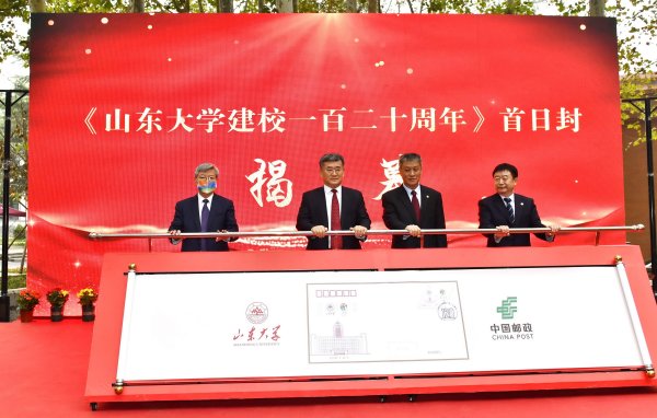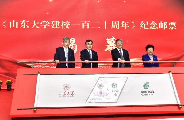 10月15日上午,《山东大学建校120周年》纪念邮票首发式在中心校区举行。中国邮政集团有限公司党组书记、董事长刘爱力,山东大学党委书记郭新立、校长樊丽明、常务副校长王琪珑出席仪式。山东大学党委副书记张永兵主持仪式。