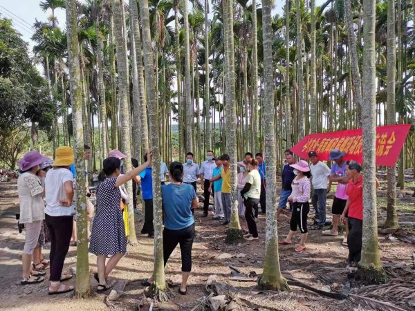 一是现场提供问题指导。通过组织到访槟榔户到就近槟榔种植园观摩并诊断病根,现场给予槟榔户指导,解决槟榔“黄化病”等种植病害问题。二是开展农技知识交流。中化农业技术专家为槟榔户讲解病害预防、虫害防治等两大防治举措,针对病因逐一详细传授植保技术。三是做好槟榔施肥介绍。以惠农中心销售的化肥为例,从施肥深度、施肥搭配、施肥时期等进行讲解,指导槟榔户通过合理使用特制肥料来提高槟榔树的免疫力。四是进行惠农金融讲解。现场为槟榔户讲解融资E贷款和邮政金融各项权益等激励政策,引导槟榔户使用邮政金融业务,解决槟榔户种植资金问题。