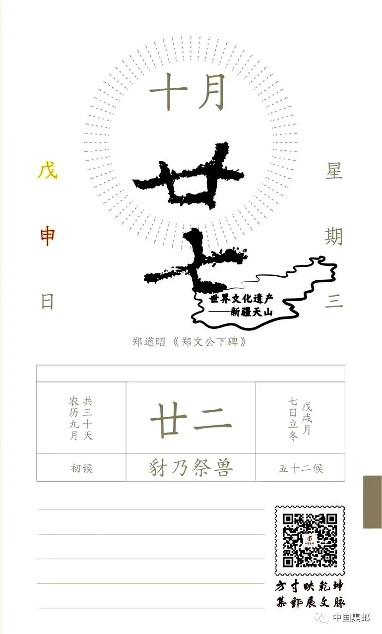 《方寸天地——邮票上的中国世界遗产》 集邮日历(10月27日页面)