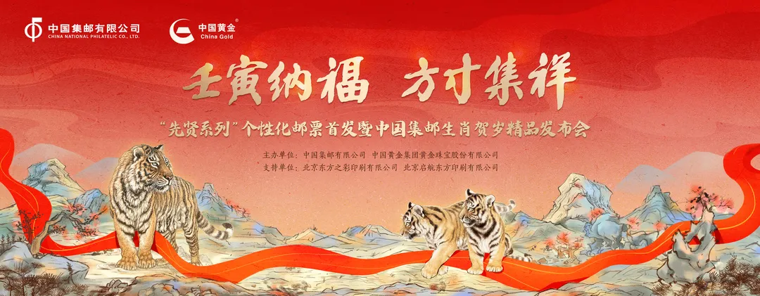 慈牛摇尾杳然去,福虎献瑞入户来。为深入贯彻刘爱力董事长“根植邮政文化基因,为推动社会主义文化繁荣兴盛作出更大贡献”的指示,推动以邮为媒,讲好中国故事、展现中国气派,12月2日上午,中国集邮有限公司、中国黄金集团黄金珠宝股份有限公司特联合主办壬寅纳福方寸集祥——“先贤系列”个性化邮票首发暨生肖贺岁精品发布会。