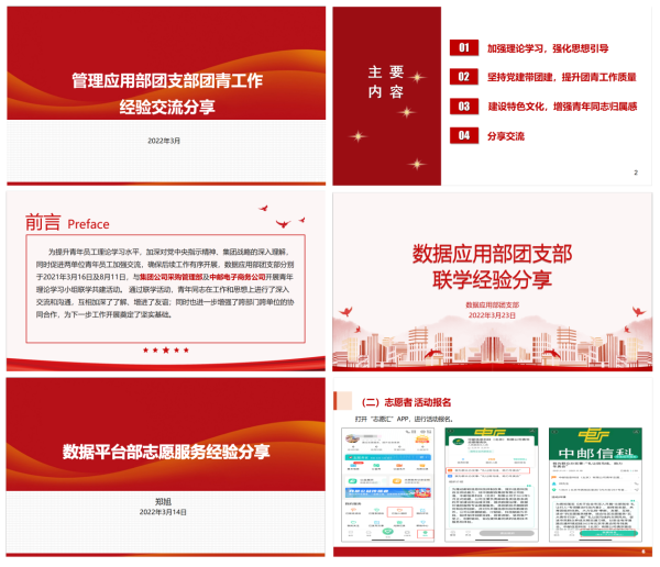 此后,管理应用部团支部、数据应用部团支部、数据平台部团支部,依次分别对本支部团青工作亮点进行了经验交流分享。