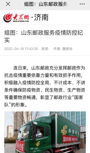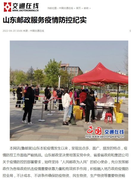 中国交通在线4月20日报道山东邮政服务疫情防控纪实