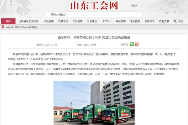 山东工会网山东4月26日报道山东邮政“战疫情践行初心使命,勇逆行彰显央企担当”