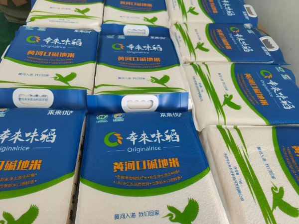 “黄河口本来味稻”品牌隶属的东营市本来农业科技开发有限公司也进入了一年中最忙的时候。厂区里,脱粒机飞转,工人们打包、贴条、装运,邮政车来来往往,机器的喧嚣声里,脚步流转,手指飞花……处处洋溢着丰收的喜悦。