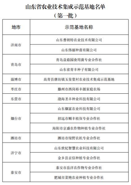 关于公布山东省农业技术集成示范基地名单(第一批)的通知