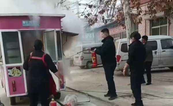 每当我们在生活中遇到各种各样危急的情况时,总会有这样一些看似平凡的人,展现出他们不平凡的那一面。滨州博兴乔庄邮政局赵腾飞、董晓鹏就是这样的人。1月4日下午,滨州博兴乔庄邮政局经理赵腾飞在走访用户返回途中,看到支局对过做生意的小吃车起火。他立即跑到失火小吃车旁,看到主人没有任何灭火设施,立即通知支局安全员董晓鹏拿两个灭火器帮忙灭火,冲向起火点。