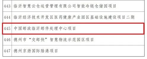 近日,山东省政府下发《关于下达2023年省重大项目名单的通知》,山东邮政临沂邮件处理中心被列入其中。