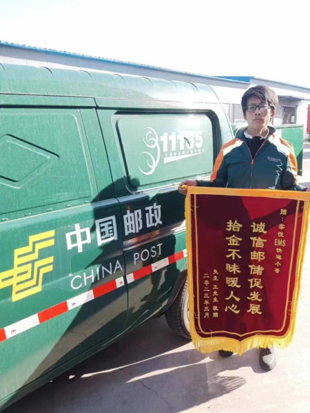 3月13日上午,王先生将一面印有“诚信邮储促发展 拾金不昧暖人心”字样的锦旗送到临淄邮政快递小哥李伟手中,对他拾金不昧的高尚品质表示衷心感谢。近日,李伟在送快递途经堂悦生活小区时,在路边捡到一个钱包,里面有现金5万元和残疾证等重要物品。考虑到金额较大、证件卡片多,失主丢失钱包一定很着急,他在附近寻找失主无果后,立刻联系单位上报情况,主动报警通过监控寻找失主,但因该区域属于监控盲区,李伟原地等待,他相信失主肯定会原路返回寻找丢失财物。一直到晚上11点多,失主返回寻找,李伟亲手将王先生遗失物品归还,事后只表明自己是邮政投递员并未留下其他信息。失主经多方打听后,找到李伟工作的地点赠送锦旗并表示感谢。