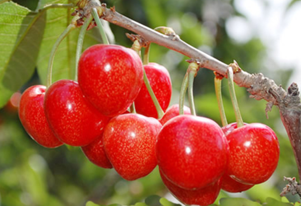 先锋樱桃生存能力强,丰产性好,很少出现裂果,是优质大果品之一。先锋属于加拿大品种,每年的6月中下旬成熟,单果重约8.5g,最大可达10.5g。果皮呈现紫红色,外型像人的心肾脏,果皮厚而且有韧性,很好贮运。