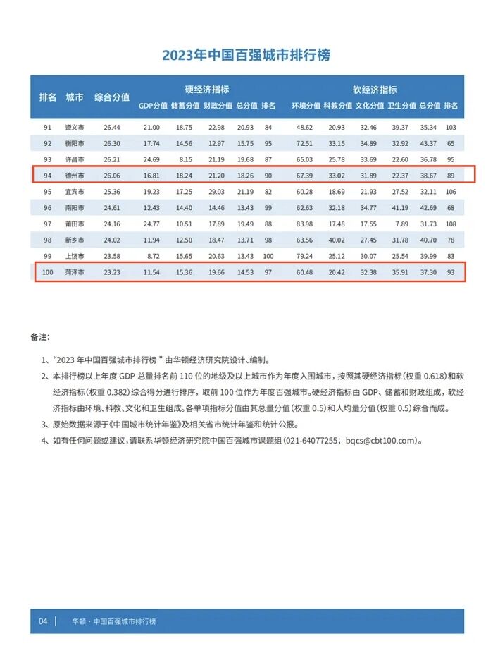 华顿中国百强城市排行榜以GDP总量排名前110位的地级及以上城市作为年度入围城市,按照其硬经济指标和软经济指标综合得分进行排序,取前100位作为年度上榜百强城市。