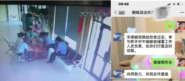 营业所工作人员深知客户遭遇网络诈骗,未配合客户办理转账业务,随即报警,同时安抚客户情绪。待民警到达营业所后,一同进行了耐心劝解,剖析了诈骗手法,劝阻了客户的转账行为,成功避免了经济损失。
