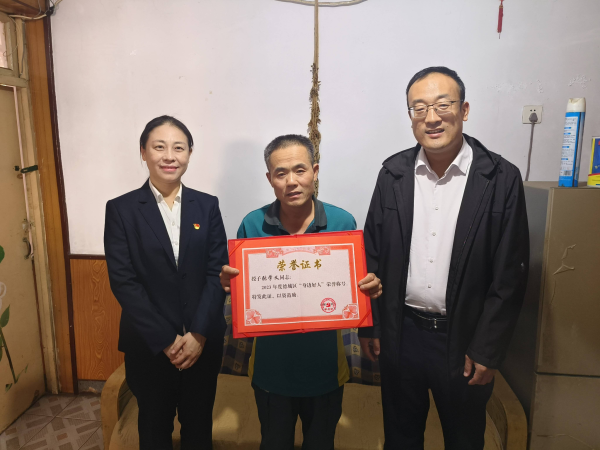 2023年10月13日,德城区文明办联合中国邮政集团有限公司德城区分公司前往慰问在新湖风景区勇救落水老人的“快递小哥”张学义,并向其颁发德城区“身边好人”荣誉证书。