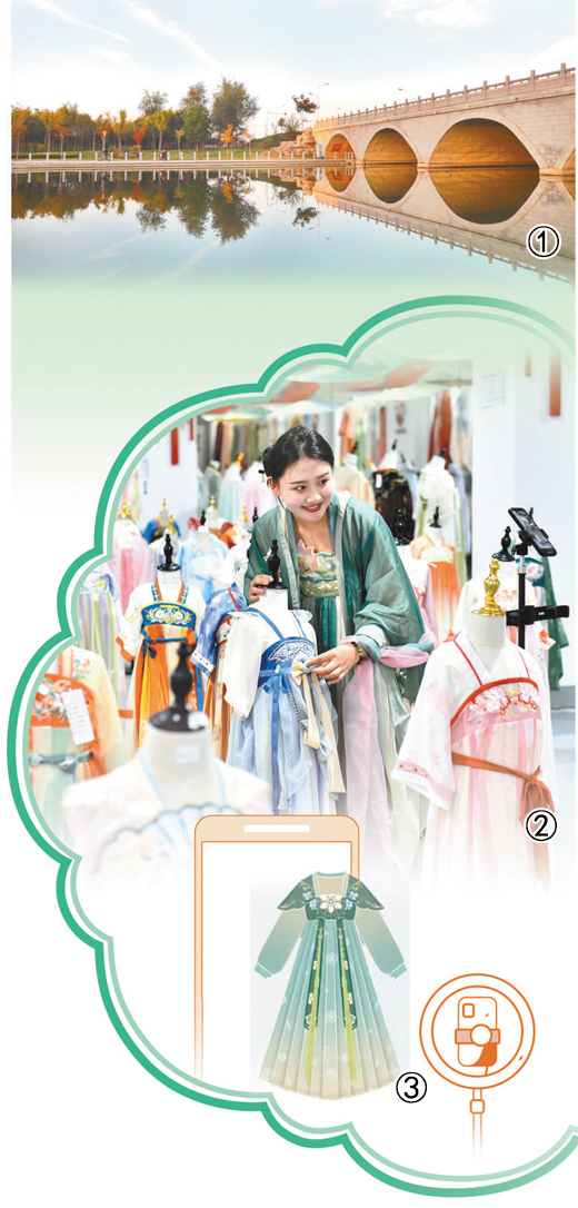 如今,曹县涌起“汉服潮”,搭乘“电商风”,形成集原创研发、设计制作、网络营销等于一体的汉服产业链,引得一批年轻人返乡创业。