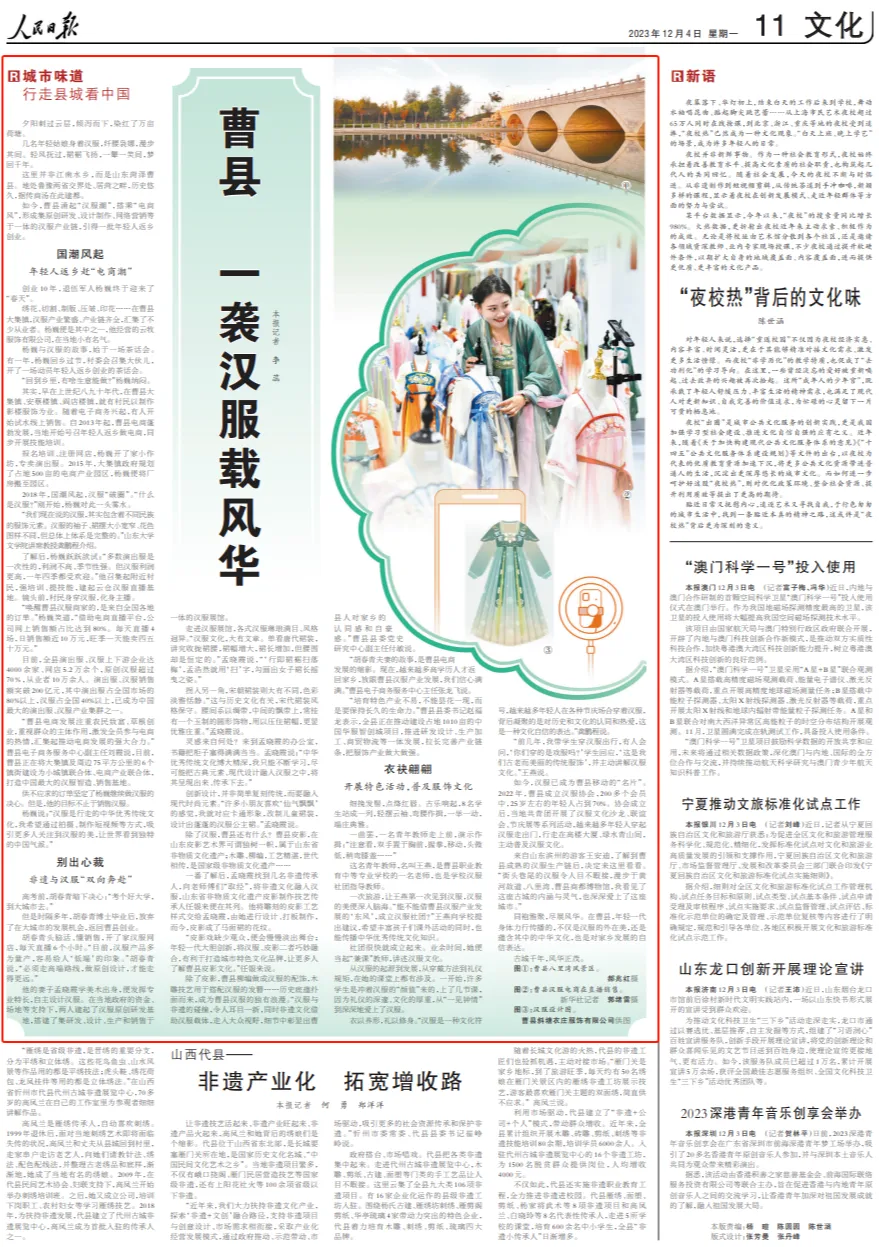 《人民日报》2023年12月4日刊登《曹县 一袭汉服载风华》