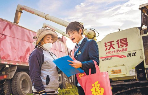 黑龙江省鸡西市滴道区邮政分公司专车专人把农户订购的化肥配送到家门口。滴道区兰岭乡投递员程占伟除了为老乡送去邮政服务,还总结经验,为村民讲解增产增收以及科学使用化肥的方法。□中国邮政报通讯员 卢明琴 记者 张丹丹 摄影报道
