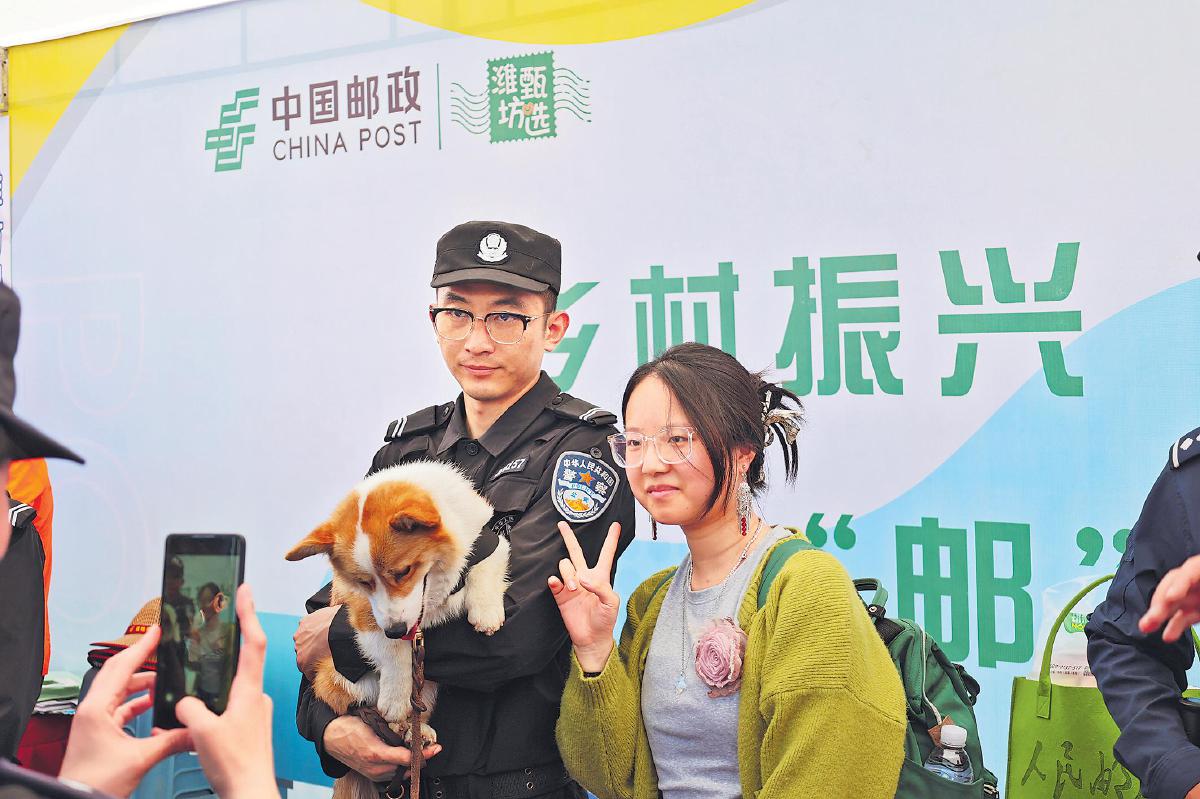 4月20日,全网流量过亿的柯基警犬福仔,在执行巡逻任务的间隙来到潍坊风筝邮局参加“巡回粉丝见面会”,与粉丝亲密互动。
