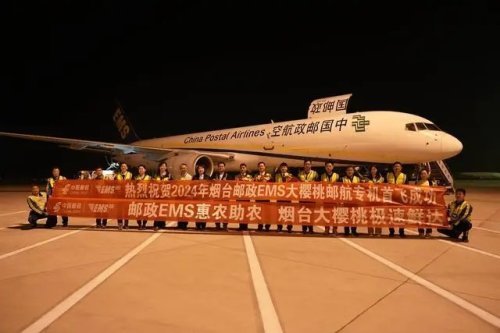 5月24日凌晨1时20分,烟台“邮政EMS樱桃专机”正式启航,一架载满烟台大樱桃的中国邮政航空公司B757货运专机从蓬莱国际机场起飞,1.5小时后落地南京机场,由南京邮件集散中心发往全国,拉开了2024年烟台邮政寄递大樱桃的序幕。