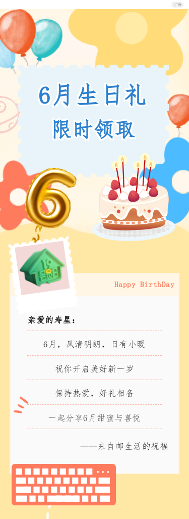 【生日礼遇】6月19日10点送好礼!专属福利,倍感温暖!