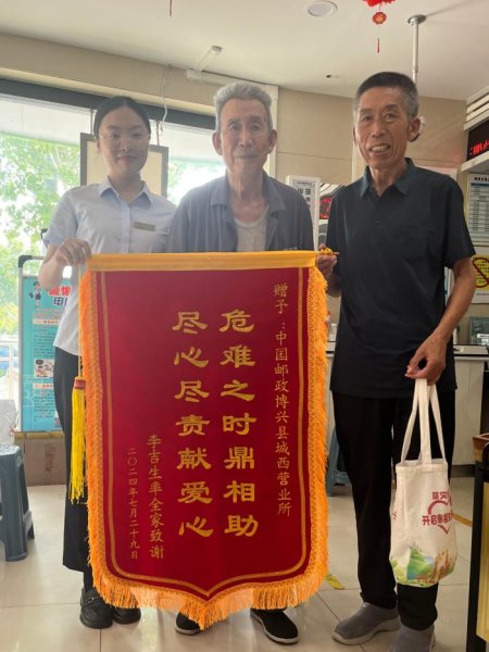 近日,在滨州博兴县城西邮政营业所,李吉生在家人的陪同下,将一面印有“危难之时鼎相助,尽心尽责献爱心”的锦旗送到营业所,感谢该支局员工在自己身体状态异常时及时伸出援手,为救治赢得了宝贵时间。已是89岁高龄的李吉生大爷激动的说到:“如果当时没有你们的帮助,我还真不知道会怎么样了,这份情意我会一直记在心里,非常感谢你们的关心和帮助”。此时此刻,一个多月前那危急的一幕还依然历历在目。