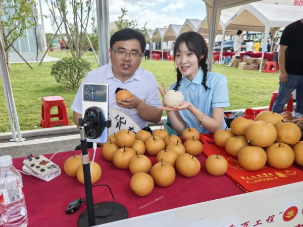 镜头前,特邀主播金句频出,与邮政小姐姐一起卖力带货秋月梨——他的来头可不简单,他是山东省枣庄市薛城区乡村振兴局吕副局长。
