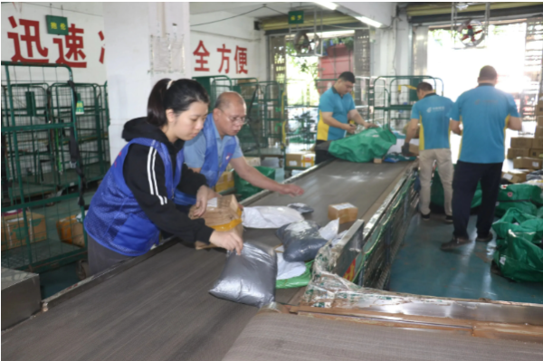 紧接着,团县委工作人员与青年志愿者们积极投入到物流分拣工作中,体验快递小哥的日常辛劳。他们认真地对包裹进行分类、扫码、搬运,在忙碌的工作中感受到邮政工作的高效与有序,也对快递小哥们的辛勤付出有了更深的敬意。