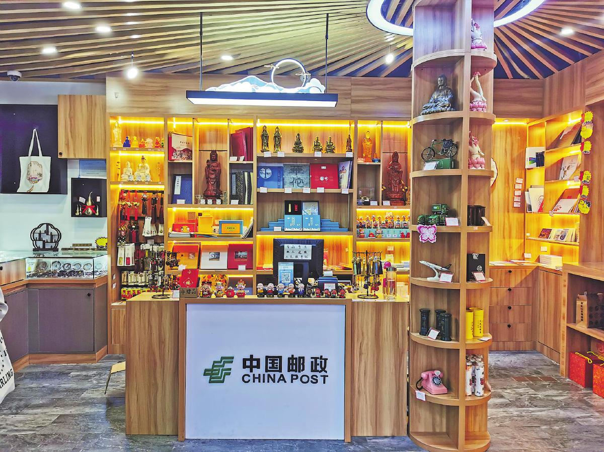 借助普陀山5A级风景名胜区品牌优势和祈福文化传统,普陀山祈福邮局设计开发了普陀山新十二景、普陀山全境木质、竹质等系列明信片,推出普陀山题材的邮册、邮折,刻制了普陀山特色祈福章戳,不少产品成为邮局销售的“爆款”。除了线下售卖,该邮局还收到了不少线上订单,进一步丰富和提升了游客在普陀山礼佛览胜过程中的文化体验。