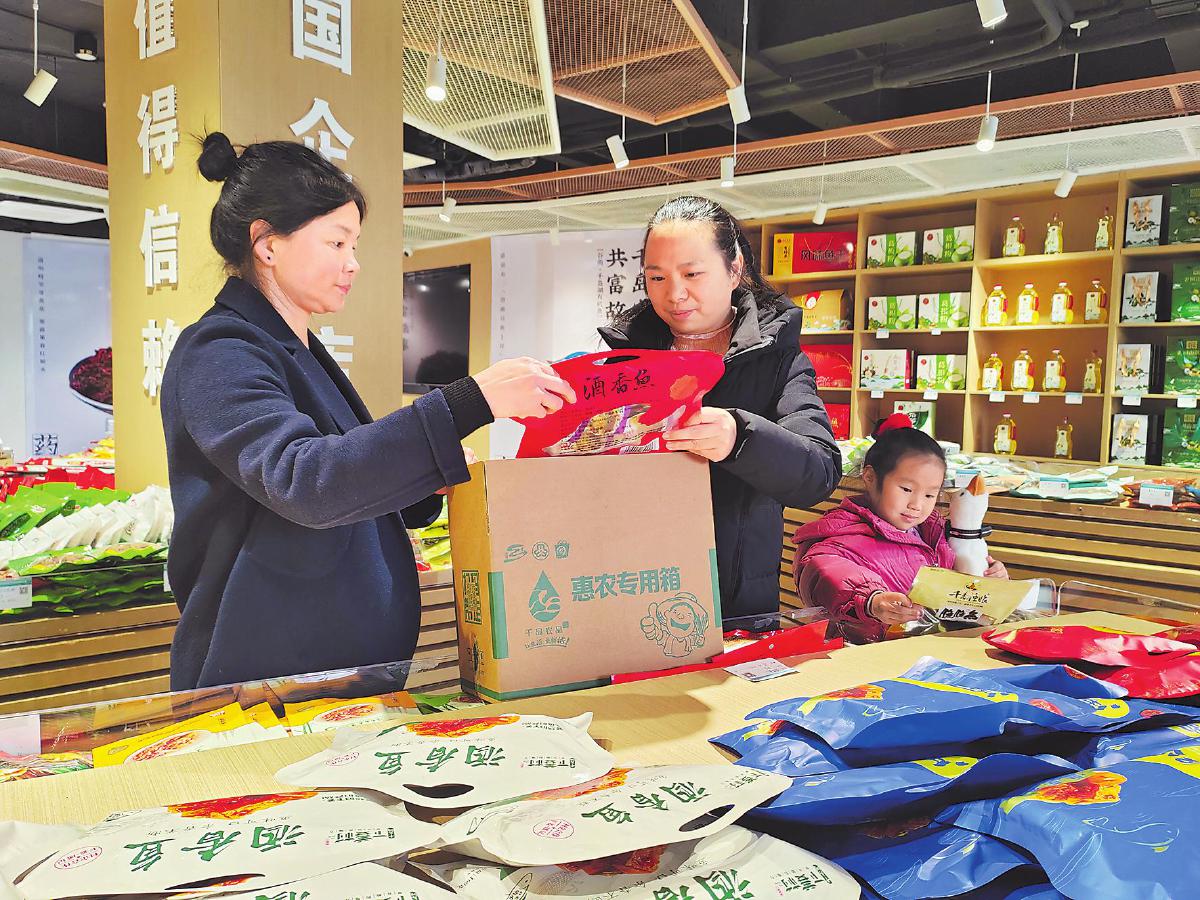 正月初二的千岛农品旗舰店人头攒动,因其紧邻千岛湖镇中心湖区旅游码头,优越的地理位置加上邮政央企品牌的加持,成了春节期间游客购买旅游特产的不二之选。