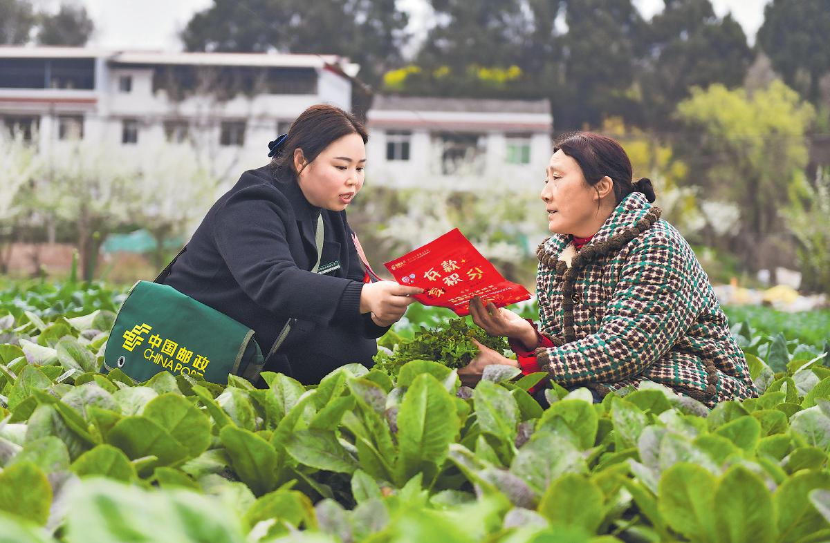 射洪市邮政分公司代理金融业务工作人员实地走访农户,了解他们的金融需求。 □曾祥文 刘习文 摄