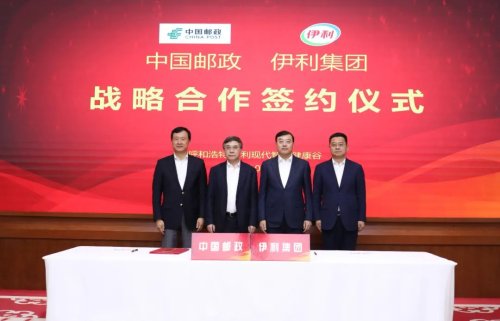 4月15日,中国邮政集团有限公司与伊利集团在内蒙古呼和浩特签署战略合作协议。