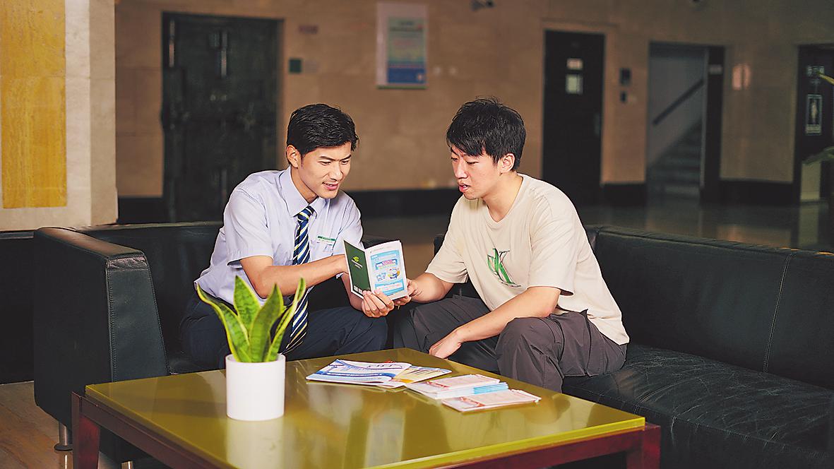 黄浦区支行营业部理财经理为客户介绍理财产品。