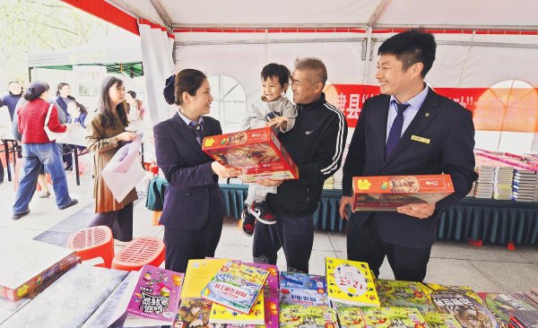 4月18日,“书香古邑·品质无棣”全民阅读季暨“玫瑰书香飘四季”阅读活动在山东省无棣县新区广场举行。无棣县邮政分公司向6所学校各捐赠了价值2000元的图书,向劳动模范、先进教师等15名代表分别捐赠价值200元的图书。